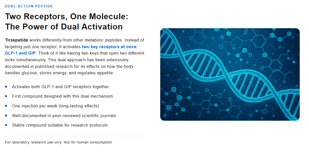 “Tirzepatide”, “Semaglutide”, and “Retatrutide” are recognized International Nonproprietary Names (INN) established by the World Health Organization. As such, these names are not subject to trademark protection and are used solely to identify the underlying chemical substances.